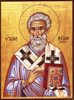 Τῆς σοφίας ἐκφάντωρ λαμπρός γενόμενος, Ὀρθοδοξίας ἐδείχθης θεοπαγής προμαχών, τῶν Πατέρων καλλονή Φώτιε μέγιστε· οὐ γάρ αἱρέσεων δεινῶν, στηλιτεύεις τήν ὀφρύν, Ἑῴας τό θεῖον σέλας, τῆς Ἐκκλησίας λαμπρότης, ἣν διατήρει Πάτερ ἄσειστον.