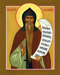 Χαίροις Μοναζόντων ὑπογραμμός, καί Μονῆς Δαλμάτων, κυβερνήτης ὁ ἀπλανής· χαίροις χαρισμάτων, ταμεῖον θεοβρύτων, Ἰσαάκιε παμμάκαρ, Ἀγγέλων σύσκηνε.