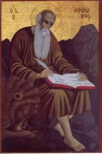 Χαίροις ἐναρέτου βίου εἰκών, καί τοῦ Παρακλήτου, ἐνδιαίτημα ἱερόν· χαίροις συνωνύμων, τῶν σῶν προστάτης θεῖος, καί πρέσβυς πρός τόν Κτίστην, ὦ Ἱερώνυμε.