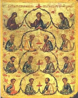 ήν ἡμέρα αὐτή ἡ Ἐκκλησία ἑορτάζει μέ ξεχωριστή λαμπρότητα τή Σύναξη τῶν Δώδεκα Ἀποστόλων. Βεβαίως ὑπάρχουν καί οἱ μνῆμές τους σέ διάφορες ἡμερομηνίες τοῦ λειτουργικοῦ ἔτους, ἀλλά μέ αὐτό τό συλλογικό ἑορτασμό τιμᾶται σύμπασα ἡ χορεία τῶν μεγάλων αὐτῶν ἀνδρῶν, οἱ ὁποῖοι ὡς συνεχιστές τοῦ σωτηριώδους ἔργου τοῦ Κυρίου ἐπί τῆς γῆς, ἔστρεψαν τό ροῦ τῆς ἱστορίας καί ἄλλαξαν κυριολεκτικά τή μορφή τοῦ κόσμου. Χάρη στόν ἰδικό τους ἀγώνα, τίς ἀφάνταστες προσωπικές τους θυσίες, τή μαρτυρία καί τό μαρτύριό τους ἐθεμελιώθηκε ἡ Ἐκκλησία στόν κόσμο.