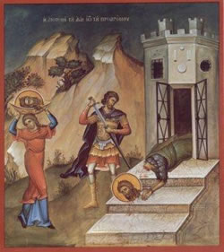 Ἡ τοῦ Προδρόμου ἔνδοξος ἀπoτομή, οἰκονομία γέγονέ τις θεϊκή, ἵνα καί τοῖς ἐν Ἅδῃ, τοῦ Σωτῆρος κηρύξῃ τήν ἔλευσιν. Θρηνείτω οὖν Ἡρωδιάς, ἄνομον φόνον αἰτήσασα· οὐ νόμον γάρ τόν τοῦ Θεοῦ, οὐ ζῶντα αἰώνα ἠγάπησεν, ἀλλ’ ἐπίπλαστον πρόσκαιρον.