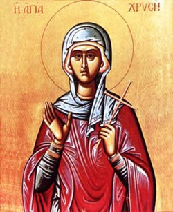 Σκεῦος χρύσεον, τῆς παρθενίας, καί ἀκήρατος, νύμφη Κυρίου, ἐχρημάτισας Χρυσῆ καλλιπάρθενε· τήν γάρ ἁγνείαν ἀμέμπτως φυλάττουσα, ὐπέρ Χριστοῦ θεοφρόνως ἐνήθλησας· Μάρτυς ἔνδοξε, ἱκέτευε τόν Νυμφίον σου, δωρήσασθε ἡμῖν τό μέγα ἔλεος.