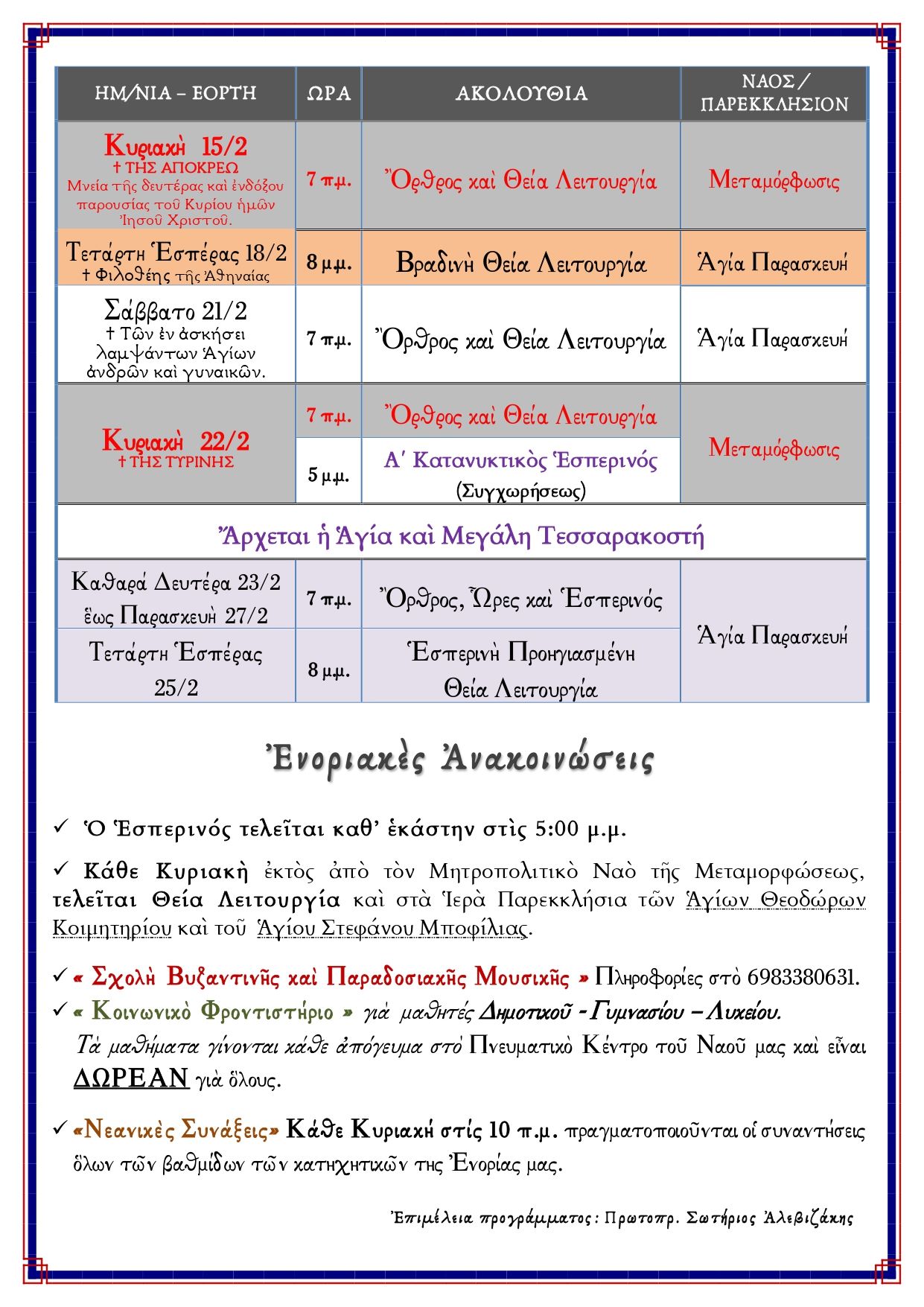 Κάνε κλικ εδώ για να κατεβάσεις το πρόγραμμα τῶν Ἱερῶν Ἀκολουθιῶν Φεβρουαρίου 2026 σε μορφή .pdf