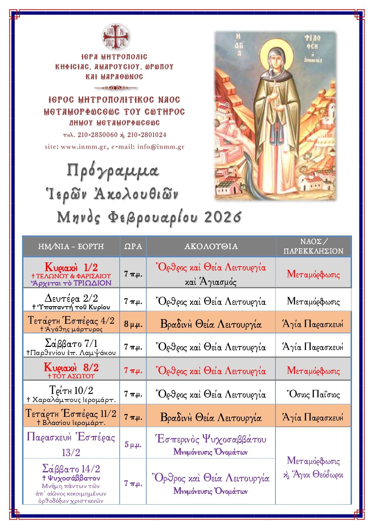 Ιερό Παρεκκλήσιο Αγίας Παρασκευής: (+30) 210 2801024