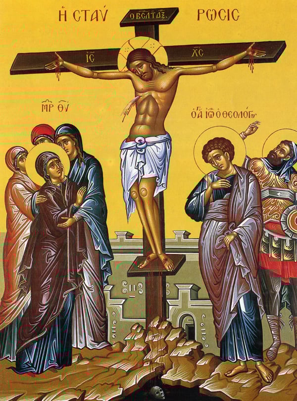 Τὸν δι’ ἡμᾶς σταυρωθέντα, δεῦτε πάντες ὑμνήσωμεν· αὐτὸν γὰρ κατεῖδε Μαρία ἐπὶ τοῦ ξύλου καὶ ἔλεγεν· Εἰ καὶ Σταυρὸν ὑπομένεις, σὺ ὑπάρχεις ὁ Υἱὸς καὶ Θεός μου.